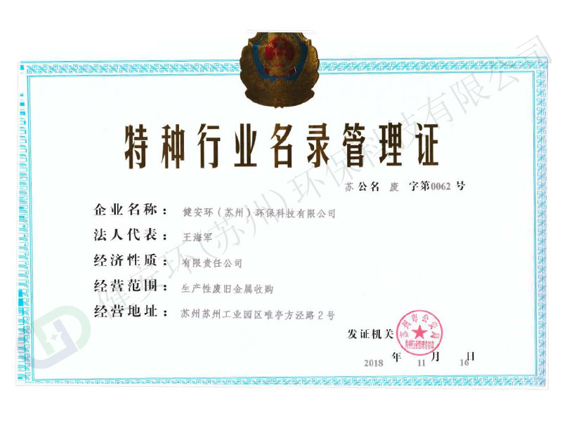 特種行業(yè)名錄管理證